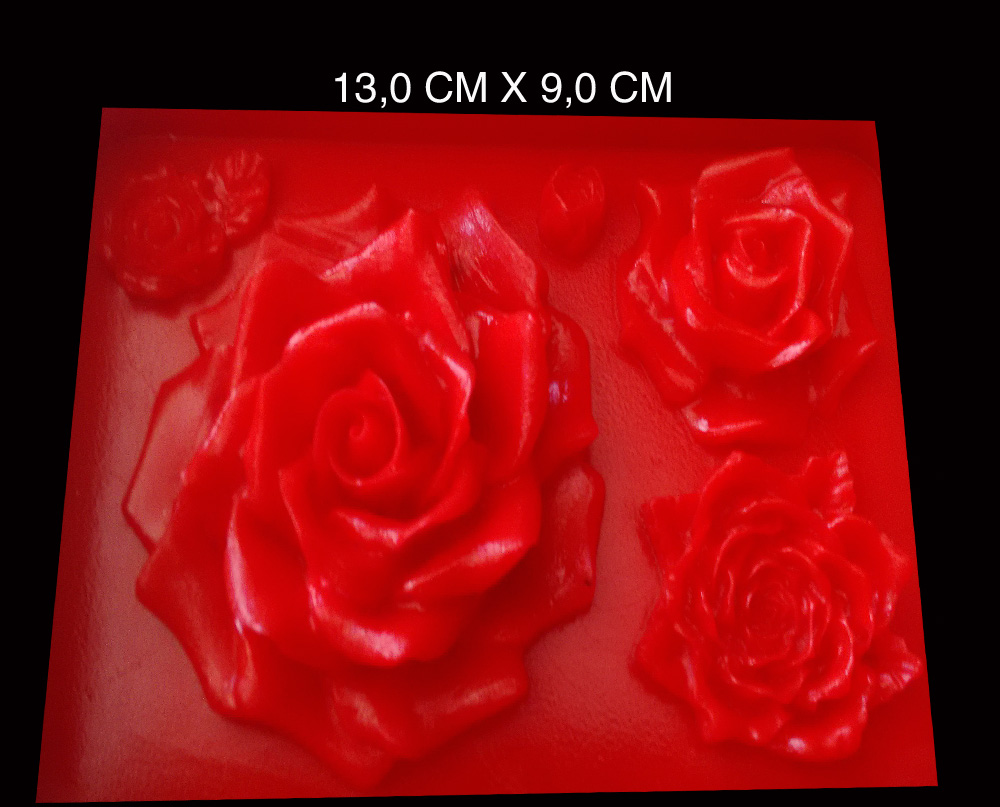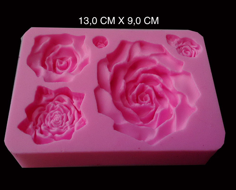 *Molde silicone de ROSAS VARIADAS . *Material feito em 100% silicone . *Tamanho 13,0 cm x 9,0 m *Confeccionado em material flexível *Durável, resistente a altas e baixas temperaturas. *Ideal para moldar velas, biscuit, sabonete, chocolate, pasta americana, massa elástica.